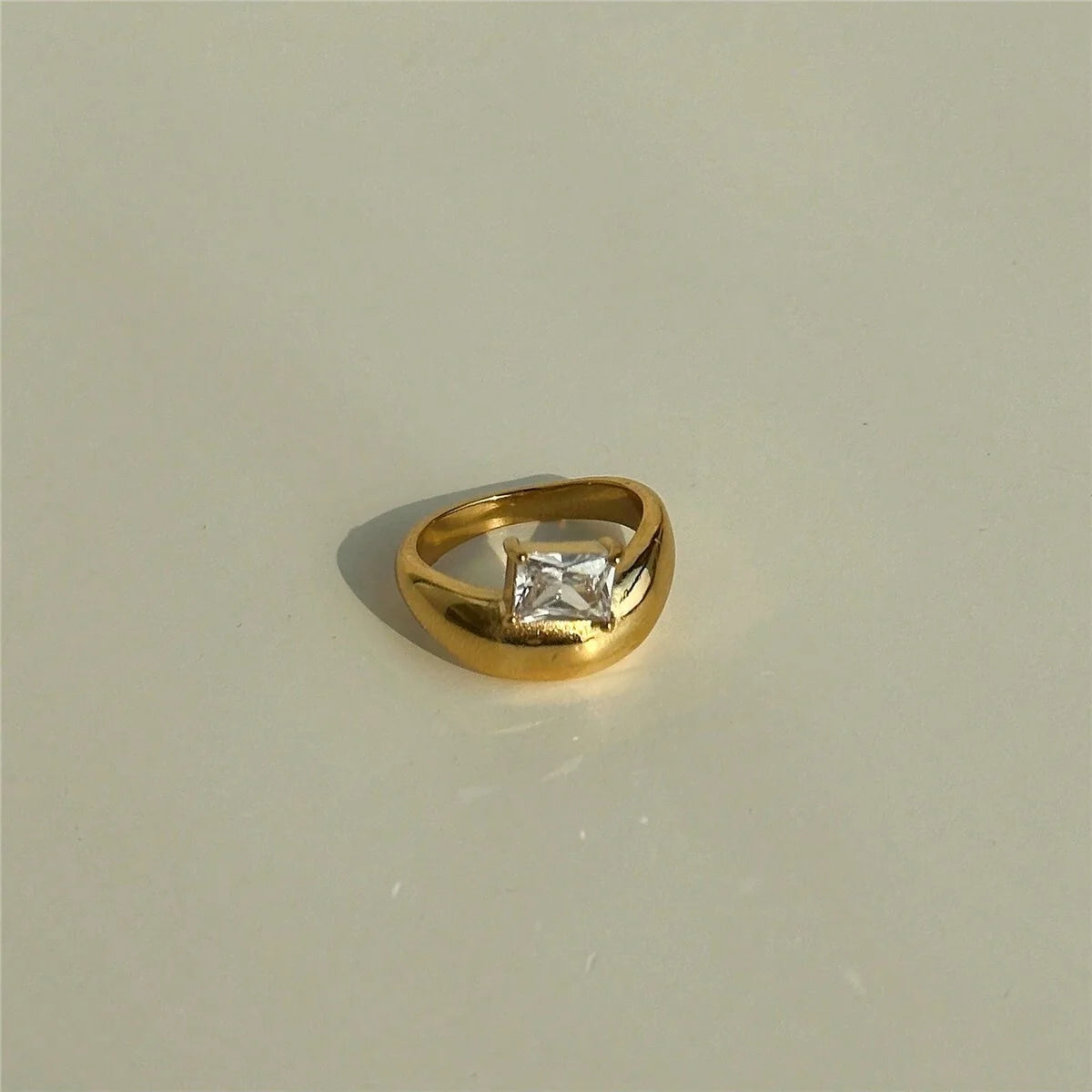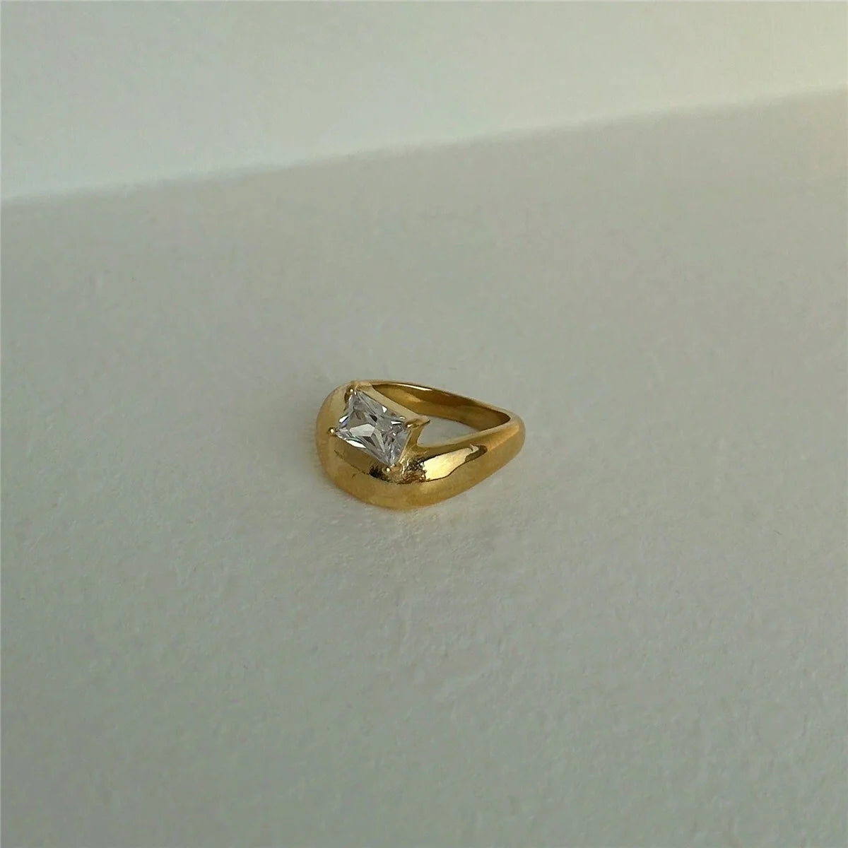Inspired by the sun-drenched stone villas of the Mediterranean, this piece captures the essence of heritage without the weight of tradition. The geometric architectural lines are softened by a radiant 18k gold finish, creating a silhouette that feels both ancient and remarkably modern. It is a ring designed for the woman who prefers a gallery opening to a crowded gala—a quiet statement of taste that pairs as effortlessly with crisp linen as it does with silk evening wear. Crafted for longevity and finished with a precision-set zircon, it remains a steadfast companion for those who understand that true luxury never needs to shout.