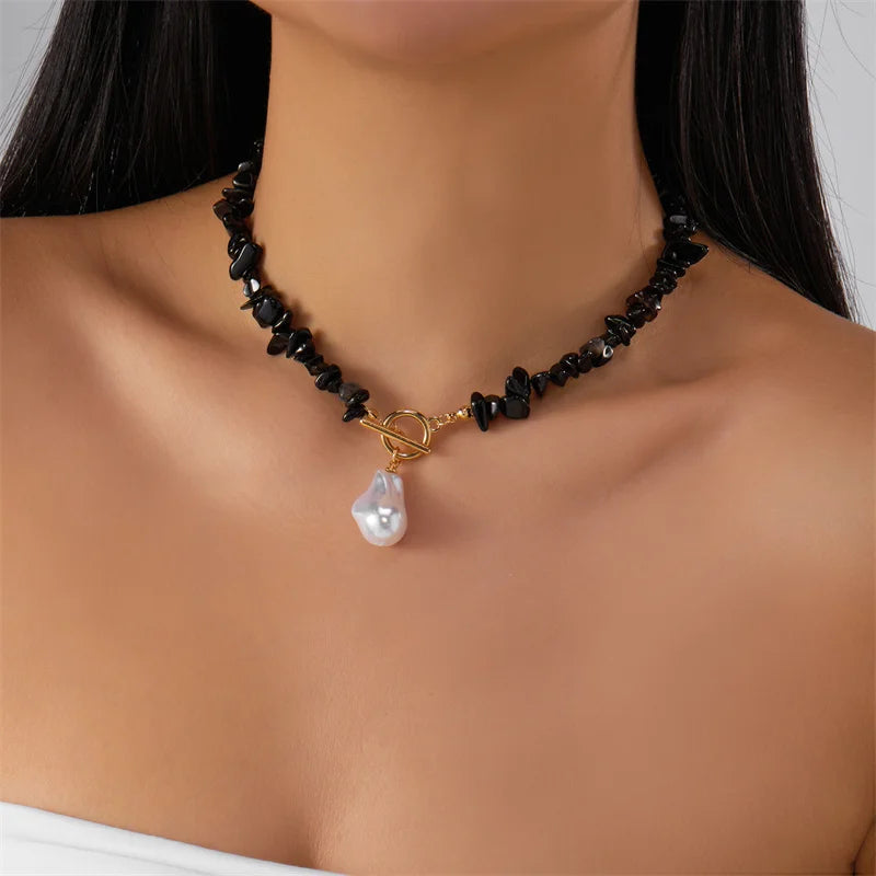Recalling the effortless glamour of a mid-century coastal retreat, this choker marries the soft glow of hand-selected simulated pearls with a distinctive, irregular silhouette. The geometric glass stone accents provide a subtle, artisanal contrast, echoing the eclectic treasures one might discover in a hidden boutique along the Amalfi Coast. Designed to sit elegantly at the base of the throat, it offers a refined finish to a structured blazer or a deep-V silk gown. This is a piece for the woman who embraces the "Bohemian Chic" of the elite—a charming fusion of vintage character and modern poise.